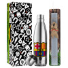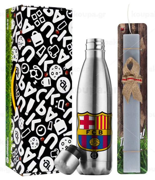 Barcelona FC, Easter Set, metallic stainless thermos flask (500ml) & scented flat Easter candle (30cm) (GRAY)