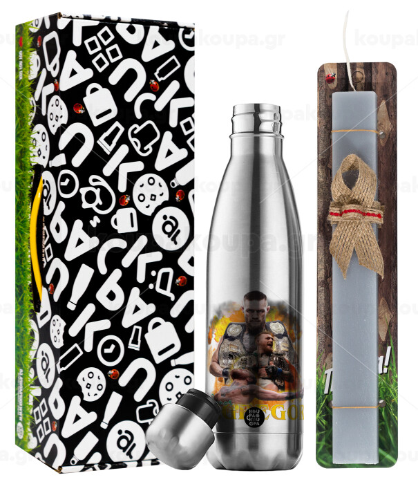 Conor McGregor Notorious, Easter Set, metallic stainless thermos flask (500ml) & scented flat Easter candle (30cm) (GRAY)