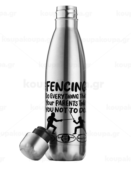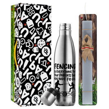 Fencing, do everything that your parents told you not to do., Easter Set, metallic stainless thermos flask (500ml) & scented flat Easter candle (30cm) (GRAY)