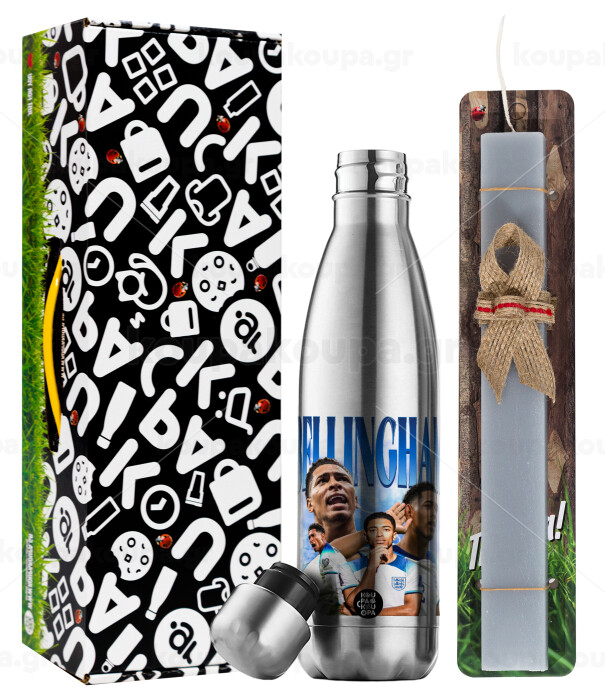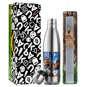 Jude Bellingham, Easter Set, metallic stainless thermos flask (500ml) & scented flat Easter candle (30cm) (GRAY)