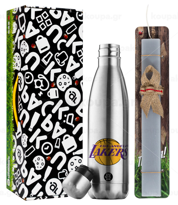 Lakers, Easter Set, metallic stainless thermos flask (500ml) & scented flat Easter candle (30cm) (GRAY)