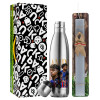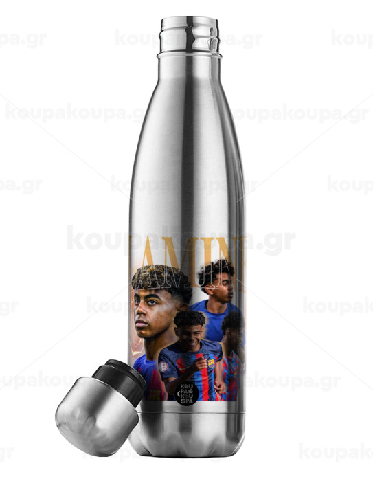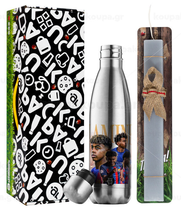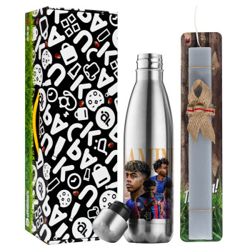 lamine yamal FCB, Easter Set, metallic stainless thermos flask (500ml) & scented flat Easter candle (30cm) (GRAY)