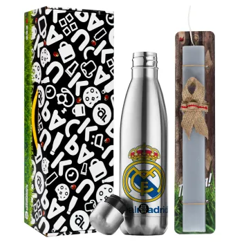 Real Madrid CF, Easter Set, metallic stainless thermos flask (500ml) & scented flat Easter candle (30cm) (GRAY)