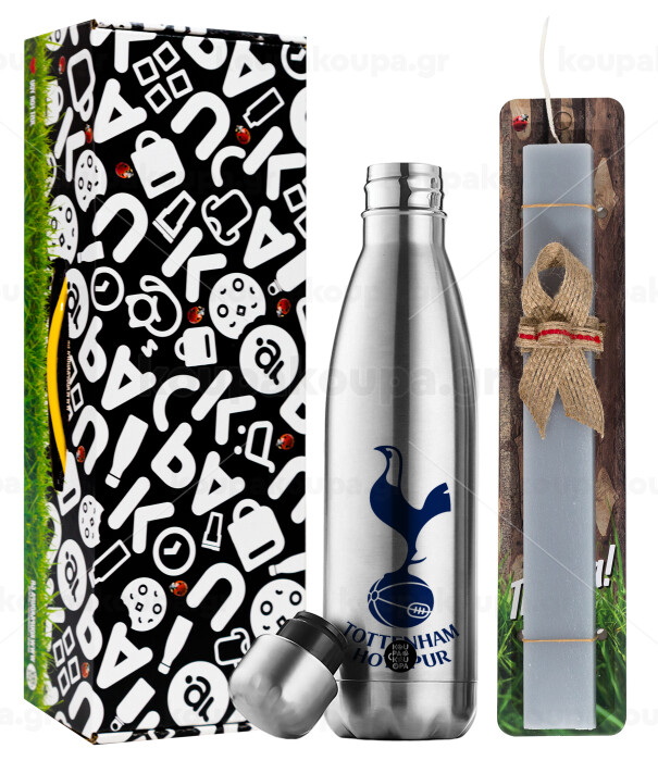 Tottenham Hotspur, Easter Set, metallic stainless thermos flask (500ml) & scented flat Easter candle (30cm) (GRAY)
