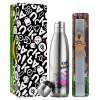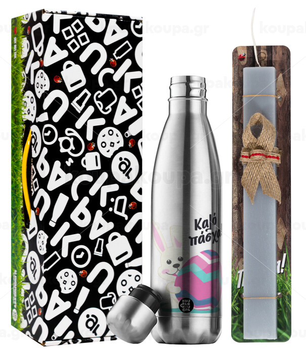 Καλό πάσχα, Easter Set, metallic stainless thermos flask (500ml) & scented flat Easter candle (30cm) (GRAY)