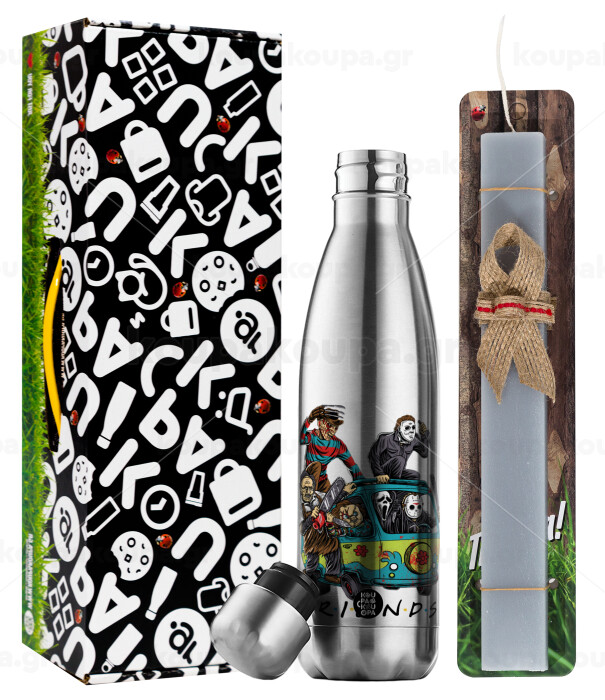 Halloween Friends Scooby Doo, Easter Set, metallic stainless thermos flask (500ml) & scented flat Easter candle (30cm) (GRAY)