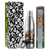 Halloween Inside out, Easter Set, metallic stainless thermos flask (500ml) & scented flat Easter candle (30cm) (GRAY)