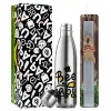 Bee my BABY!!!, Easter Set, metallic stainless thermos flask (500ml) & scented flat Easter candle (30cm) (GRAY)
