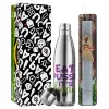 EAT pussy it's vegan, Easter Set, metallic stainless thermos flask (500ml) & scented flat Easter candle (30cm) (GRAY)