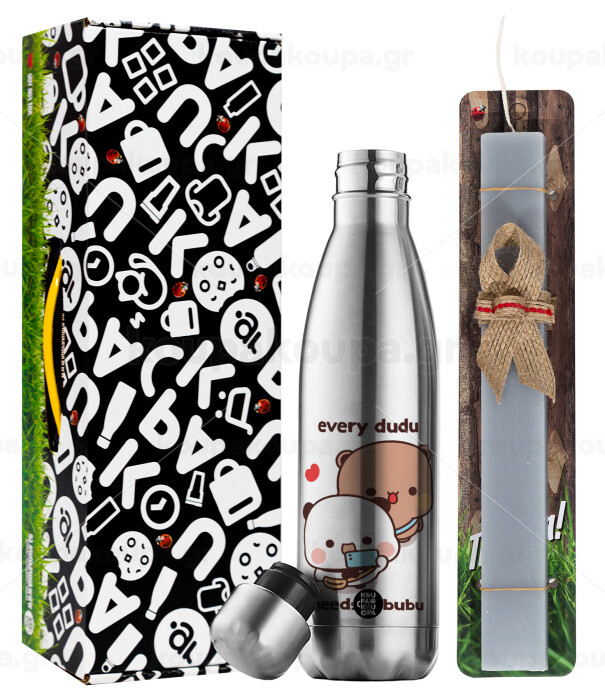 Every Dudu needs a bubu, Easter Set, metallic stainless thermos flask (500ml) & scented flat Easter candle (30cm) (GRAY)