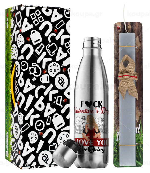 I love You Everyday , Easter Set, metallic stainless thermos flask (500ml) & scented flat Easter candle (30cm) (GRAY)