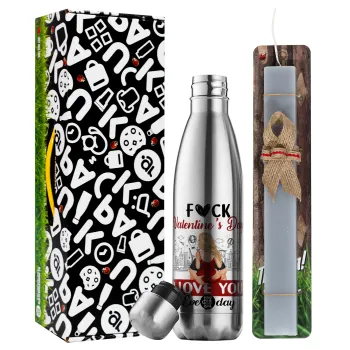 I love You Everyday , Easter Set, metallic stainless thermos flask (500ml) & scented flat Easter candle (30cm) (GRAY)