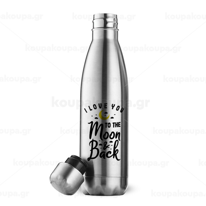I love you to the moon and back, Easter Set, metallic stainless thermos flask (500ml) & scented flat Easter candle (30cm) (GRAY)