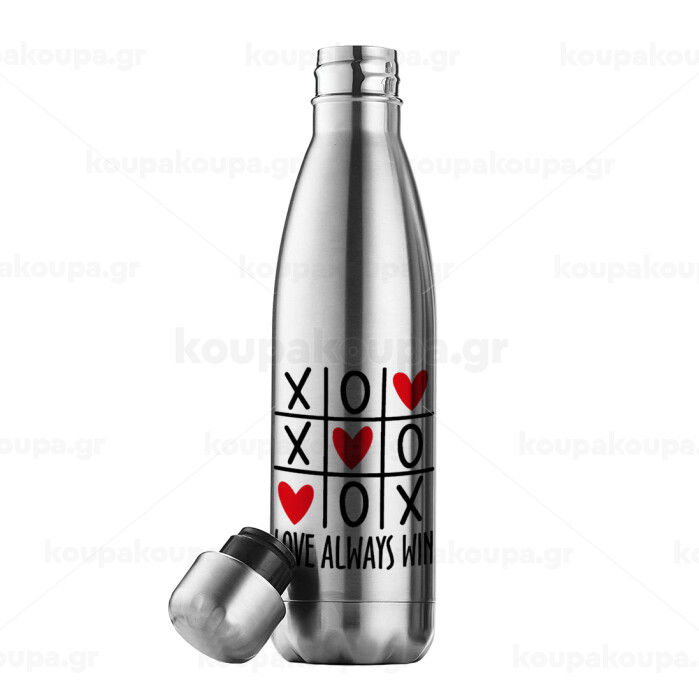 Love always win, Easter Set, metallic stainless thermos flask (500ml) & scented flat Easter candle (30cm) (GRAY)