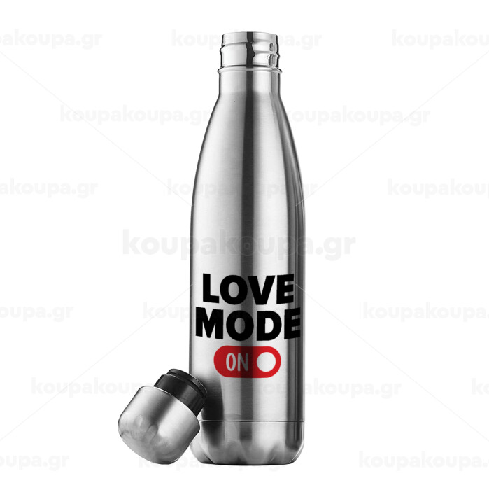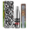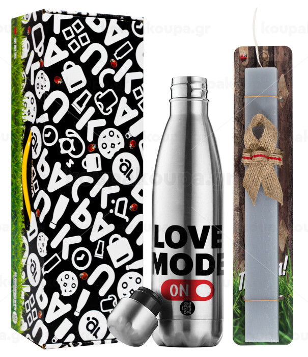 LOVE MODE ON, Easter Set, metallic stainless thermos flask (500ml) & scented flat Easter candle (30cm) (GRAY)