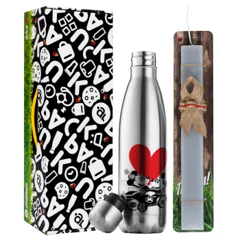 Mickey & Minnie love car, Easter Set, metallic stainless thermos flask (500ml) & scented flat Easter candle (30cm) (GRAY)