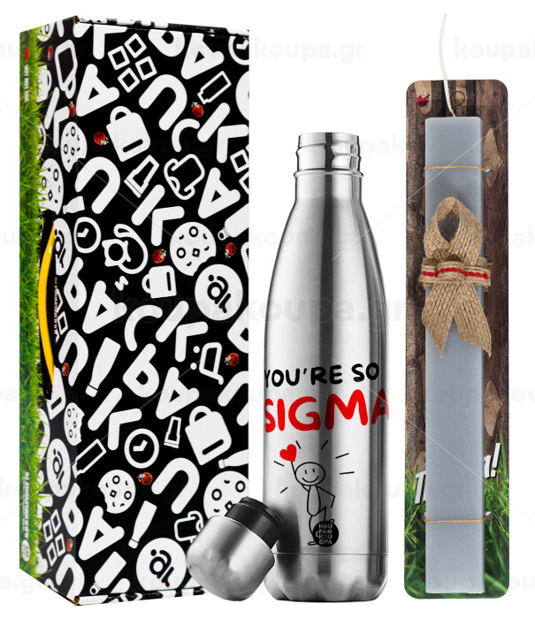 Sigma Valentine's Day , Easter Set, metallic stainless thermos flask (500ml) & scented flat Easter candle (30cm) (GRAY)