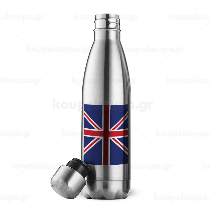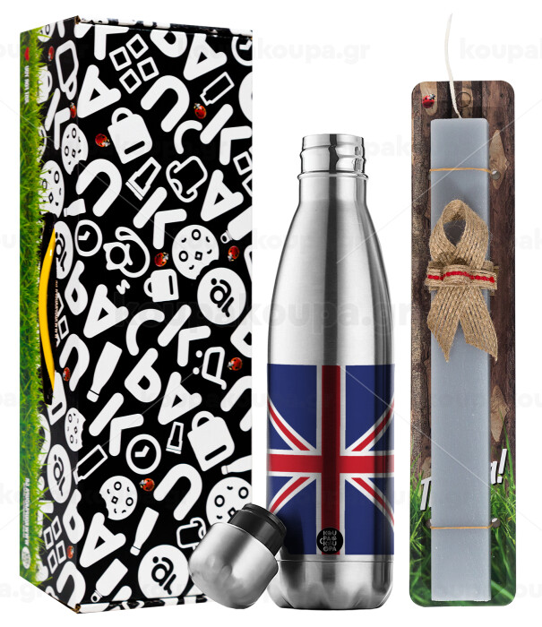 UK Flag, Easter Set, metallic stainless thermos flask (500ml) & scented flat Easter candle (30cm) (GRAY)