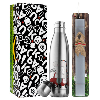 Βρουμ βρουμ, Easter Set, metallic stainless thermos flask (500ml) & scented flat Easter candle (30cm) (GRAY)