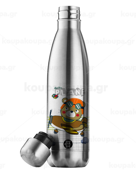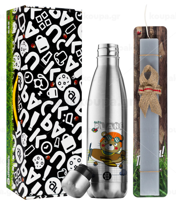 Kids Plane, Easter Set, metallic stainless thermos flask (500ml) & scented flat Easter candle (30cm) (GRAY)