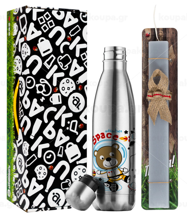 Kids Space, Easter Set, metallic stainless thermos flask (500ml) & scented flat Easter candle (30cm) (GRAY)