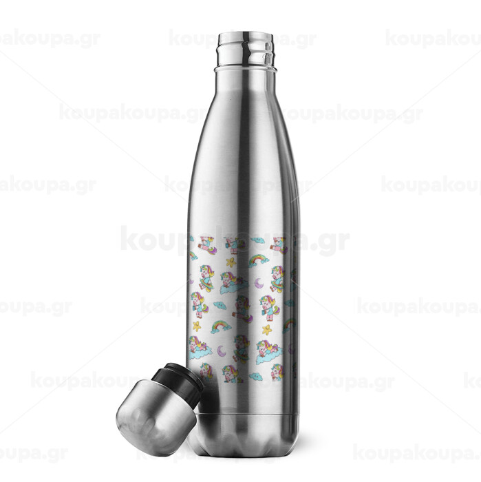 Unicorn pattern, Easter Set, metallic stainless thermos flask (500ml) & scented flat Easter candle (30cm) (GRAY)