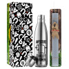 Save toilet Paper, Easter Set, metallic stainless thermos flask (500ml) & scented flat Easter candle (30cm) (GRAY)