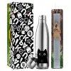 Black Cat, Easter Set, metallic stainless thermos flask (500ml) & scented flat Easter candle (30cm) (GRAY)