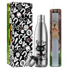 Cat, It's Fine I'm Fine Everything Is Fine, Easter Set, metallic stainless thermos flask (500ml) & scented flat Easter candle (30cm) (GRAY)