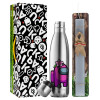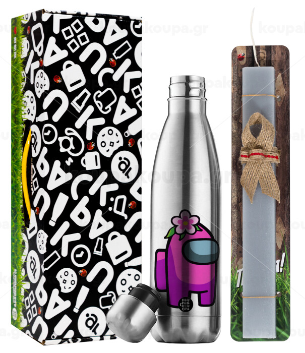 Among US girl, Easter Set, metallic stainless thermos flask (500ml) & scented flat Easter candle (30cm) (GRAY)