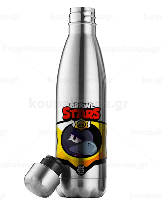 Brawl Stars Crow, Easter Set, metallic stainless thermos flask (500ml) & scented flat Easter candle (30cm) (GRAY)