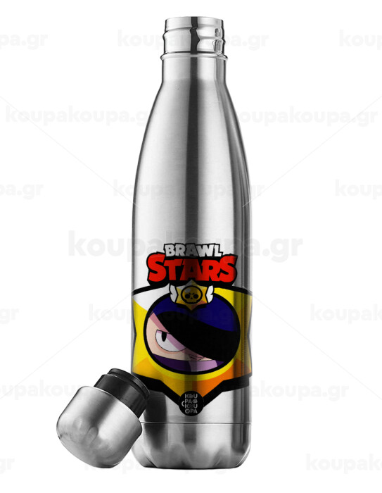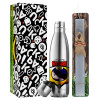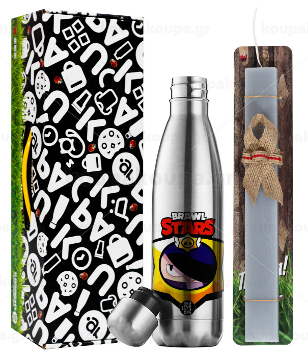 Brawl Stars Edgar, Easter Set, metallic stainless thermos flask (500ml) & scented flat Easter candle (30cm) (GRAY)