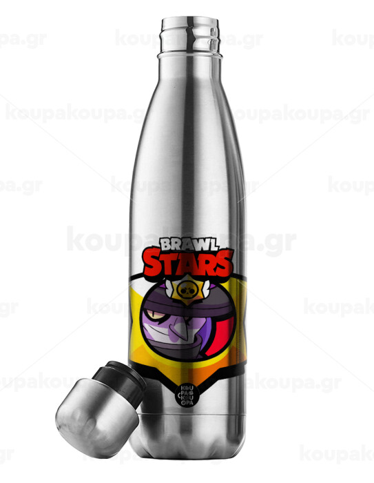 Brawl Stars Mortis, Easter Set, metallic stainless thermos flask (500ml) & scented flat Easter candle (30cm) (GRAY)
