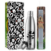 Fortnite Marshmello, Easter Set, metallic stainless thermos flask (500ml) & scented flat Easter candle (30cm) (GRAY)