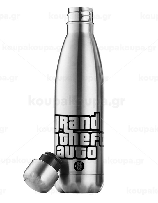 GTA (grand theft auto), Easter Set, metallic stainless thermos flask (500ml) & scented flat Easter candle (30cm) (GRAY)