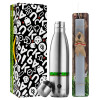 Minecraft logo green, Easter Set, metallic stainless thermos flask (500ml) & scented flat Easter candle (30cm) (GRAY)