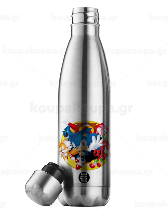 Sonic and friends, Easter Set, metallic stainless thermos flask (500ml) & scented flat Easter candle (30cm) (GRAY)