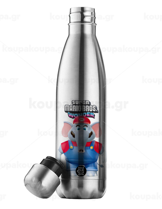Super mario wonder, Easter Set, metallic stainless thermos flask (500ml) & scented flat Easter candle (30cm) (GRAY)