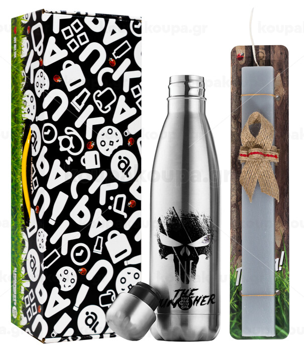 The punisher, Easter Set, metallic stainless thermos flask (500ml) & scented flat Easter candle (30cm) (GRAY)