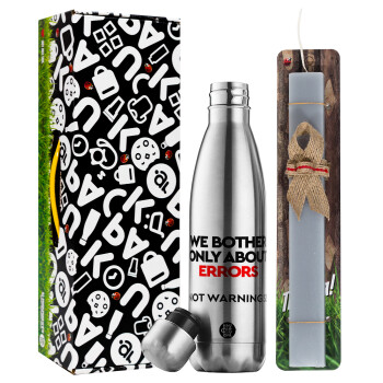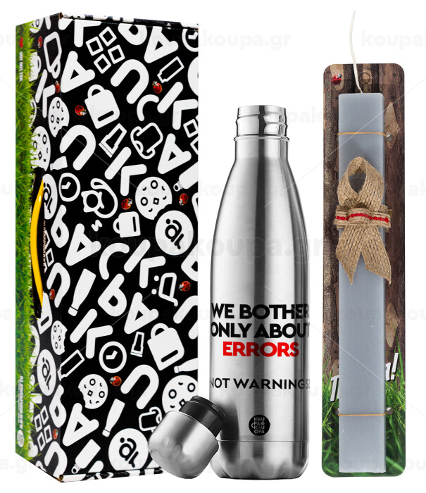 We bother only about errors, not warnings, Easter Set, metallic stainless thermos flask (500ml) & scented flat Easter candle (30cm) (GRAY)