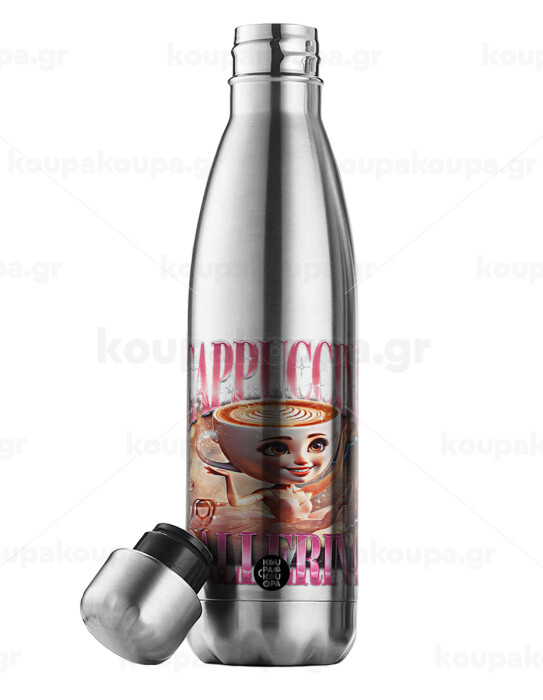 BALLERINA CAPUCHINA FUNK, Easter Set, metallic stainless thermos flask (500ml) & scented flat Easter candle (30cm) (GRAY)