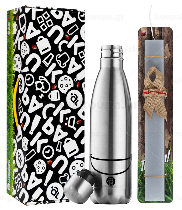 Big Smile, Easter Set, metallic stainless thermos flask (500ml) & scented flat Easter candle (30cm) (GRAY)