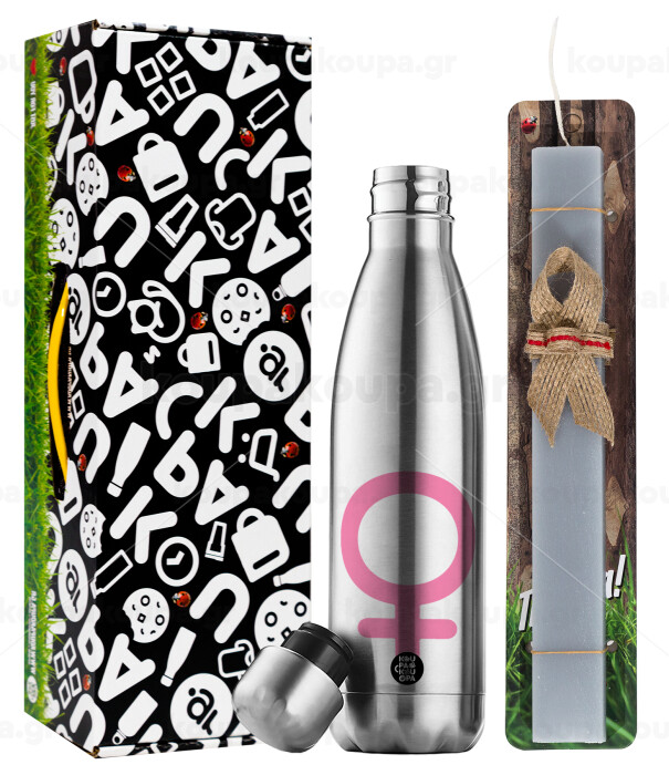 FEMALE, Easter Set, metallic stainless thermos flask (500ml) & scented flat Easter candle (30cm) (GRAY)