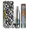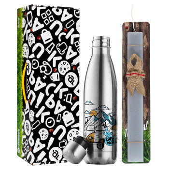 Life is a trip, Easter Set, metallic stainless thermos flask (500ml) & scented flat Easter candle (30cm) (GRAY)