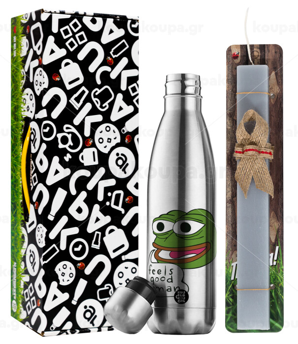 Pepe the frog, Easter Set, metallic stainless thermos flask (500ml) & scented flat Easter candle (30cm) (GRAY)