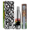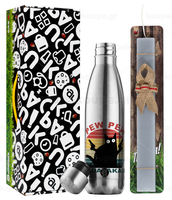 PEW PEW madafakas, Easter Set, metallic stainless thermos flask (500ml) & scented flat Easter candle (30cm) (GRAY)