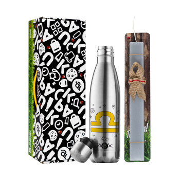 Ζώδια Τοξότης, Easter Set, metallic stainless thermos flask (500ml) & scented flat Easter candle (30cm) (GRAY)