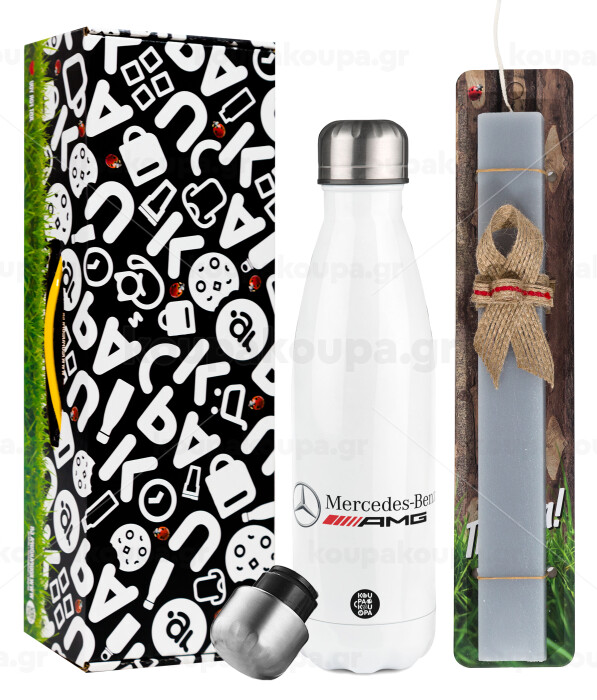 AMG Mercedes, Easter candle, metallic white thermos bottle (500ml) & aromatic flat candle (30cm) (GRAY)