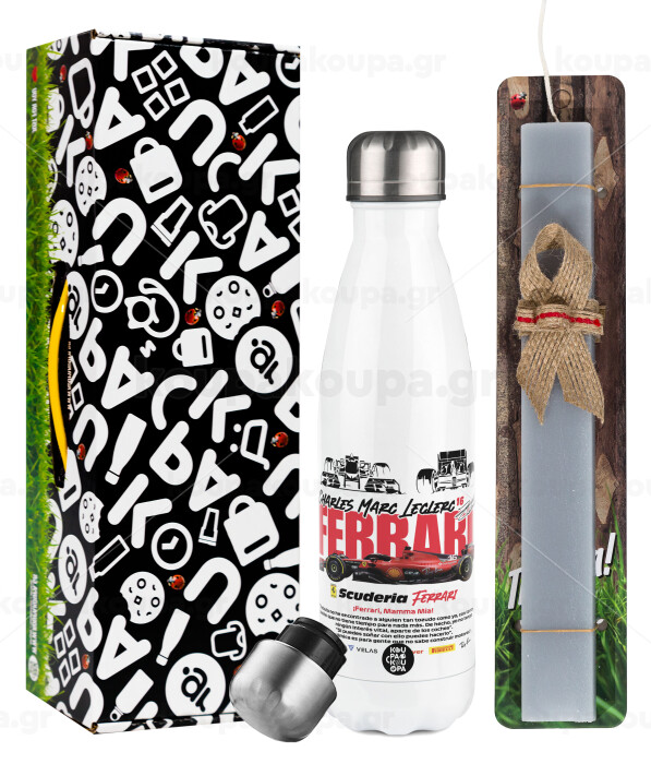 F1 Ferrari, Easter candle, metallic white thermos bottle (500ml) & aromatic flat candle (30cm) (GRAY)