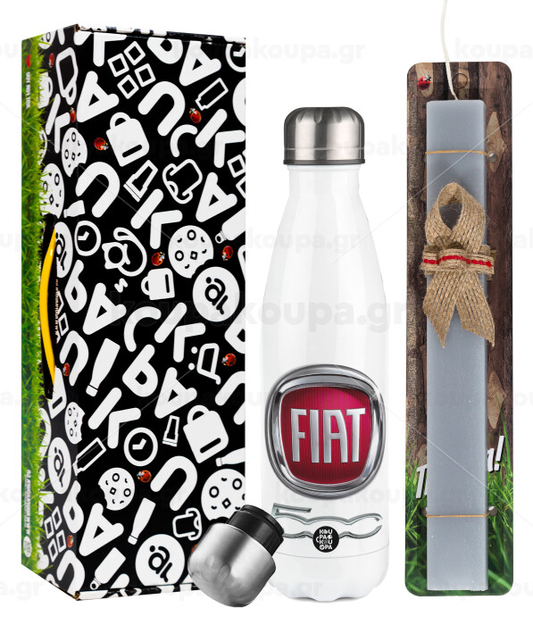 FIAT 500, Easter candle, metallic white thermos bottle (500ml) & aromatic flat candle (30cm) (GRAY)